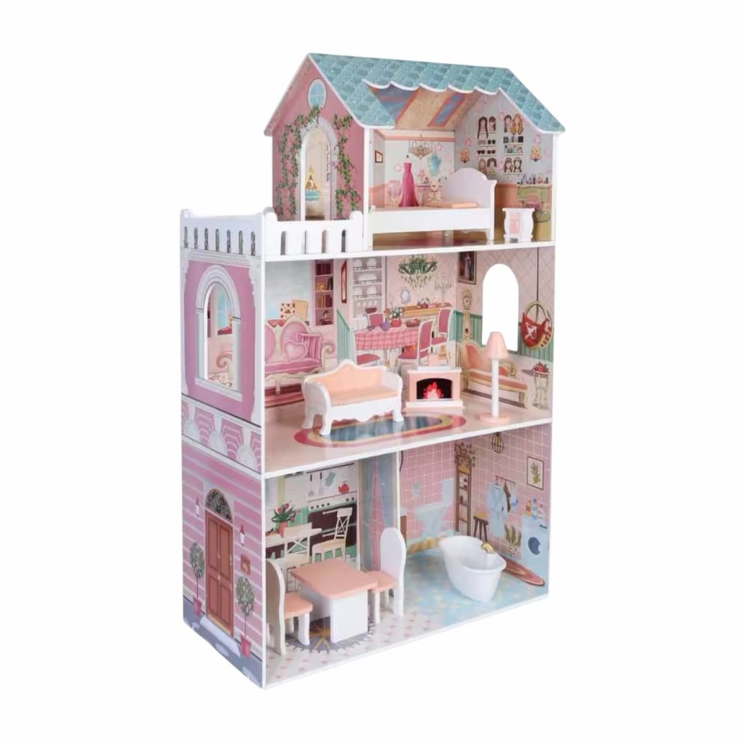 La Casa de Muñecas Daniela tiene habitaciones bien diferenciadas que enriquecen el juego de roles: la sala donde las muñecas se reúnen, la cocina donde se preparan las comidas, el dormitorio donde descansan y los demás espacios que hacen que el hogar se sienta completo y habitado.