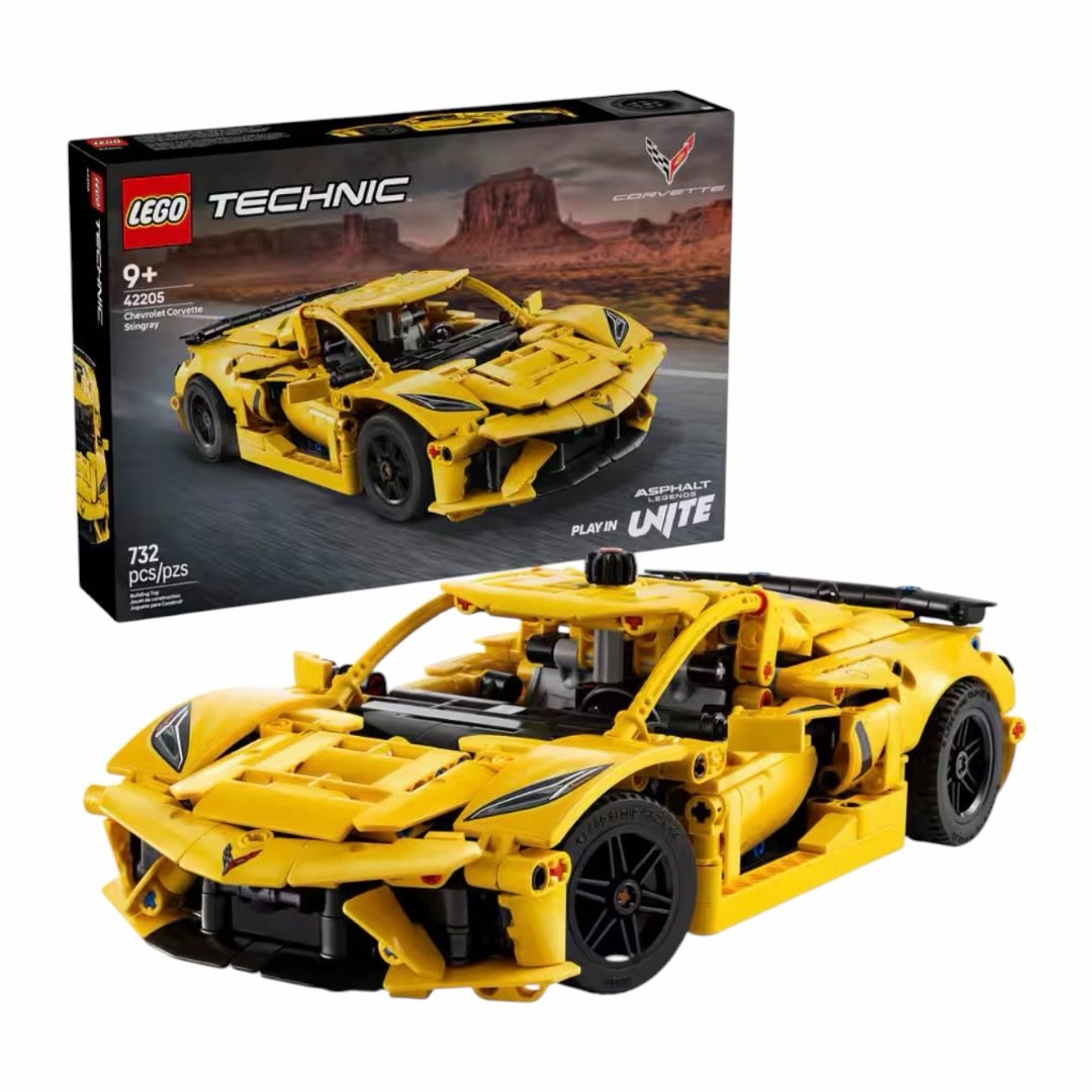 La octava generación del Corvette, el C8, revolucionó la fórmula del auto con el motor ahora ubicado en posición central como en los exóticos europeos más costosos. El Lego Technic Chevrolet Corvette Stingray 42205 captura ese diseño revolucionario con la silueta baja y agresiva que hace del C8 uno de los autos más fotografiados de la actualidad. 🌟