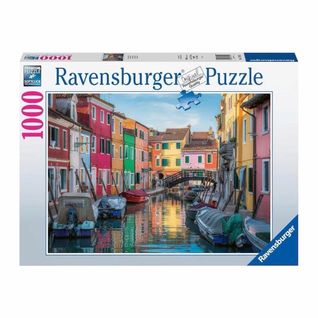 El Rompecabezas Burano Ravensburger 1000 Piezas reproduce esa paleta de colores con la fidelidad que Ravensburger garantiza en sus productos: los rojos, azules, amarillos y verdes de las fachadas de Burano en toda su saturación y vivacidad original. 🌈