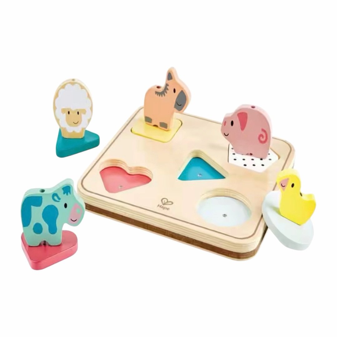 Los animales de la granja tienen un lugar especial en el imaginario infantil: la vaca, el cerdo, el pollo, el caballo. Son personajes con personalidades propias en los cuentos, los dibujos animados y los juguetes que los niños conocen desde antes de poder hablar. El Rompecabezas Granja Hape 6 Piezas aprovecha esa familiaridad para hacer que el proceso de armado sea motivado y significativo: el niño no está moviendo formas abstractas sino colocando a sus animales favoritos en su lugar correcto. 🌟