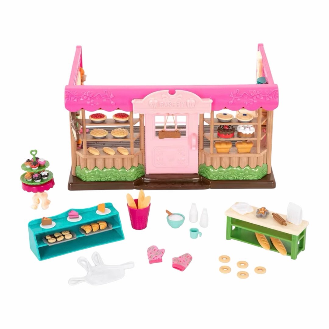 El Set Panadería Woodzeez tiene todos los elementos que hacen de una panadería un negocio completo en miniatura: los panes, los pasteles y los croissants en miniatura, el mostrador de atención al cliente y todos los accesorios que permiten al niño recrear el proceso de atender a los clientes, cobrar y organizar la mercancía con la riqueza narrativa que los mejores sets de rol ofrecen. 🌟